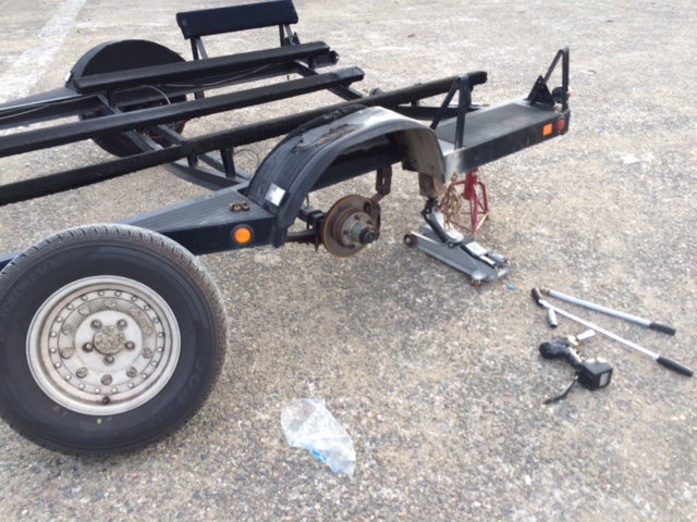 この写真を見ると「ハブ焼け」と思われて方もいるかと思いますが、水中の突起物のせいでフェンダーが凹み、船を積むとタイヤと干渉する状態でした。手際良く叩き直してくれた石塚さんには本当に感謝しております。